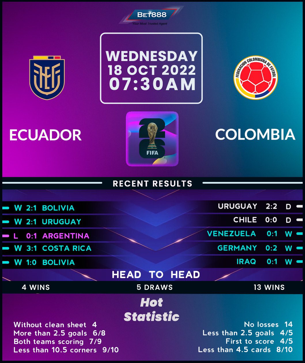 Kevin Rodriguez’s 96th-minute heroics inspired Ecuador to a sixth straight win over Bolivia last time out, maintaining their form resurgence after a 1-0 away loss to Argentina at the start of their 2026 World Cup qualifying campaign (W2). If it weren’t for a three-point deduction the CONMEBOL confederation handed them at the beginning of this cycle, they would’ve commenced this round in third. But given the circumstances, ‘La Tri’ must settle for fourth place, which still puts them in a decent position to reach back-to-back World Cup finals for the second time in history. Félix Sánchez’s men have drawn a blank in their last two competitive games against Colombia (D1, L1). Yet, after winning both home outings in 2023, they’ll be confident about breaking that duck.