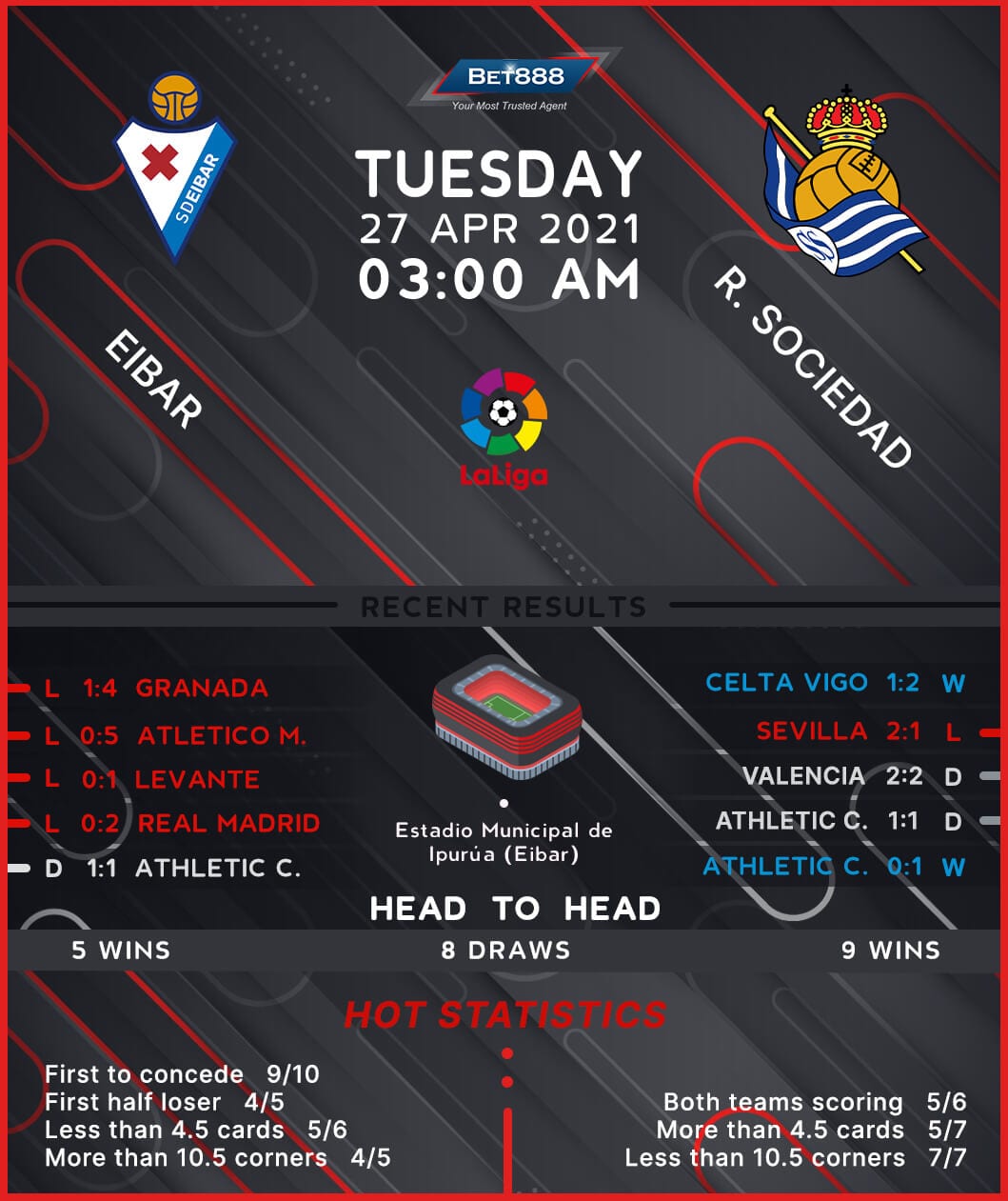 Rock-bottom Eibar are desperate to return to winning ways in La Liga and earn salvation as they entertain fifth-placed Real Sociedad at the Estadio Municipal de Ipurúa.