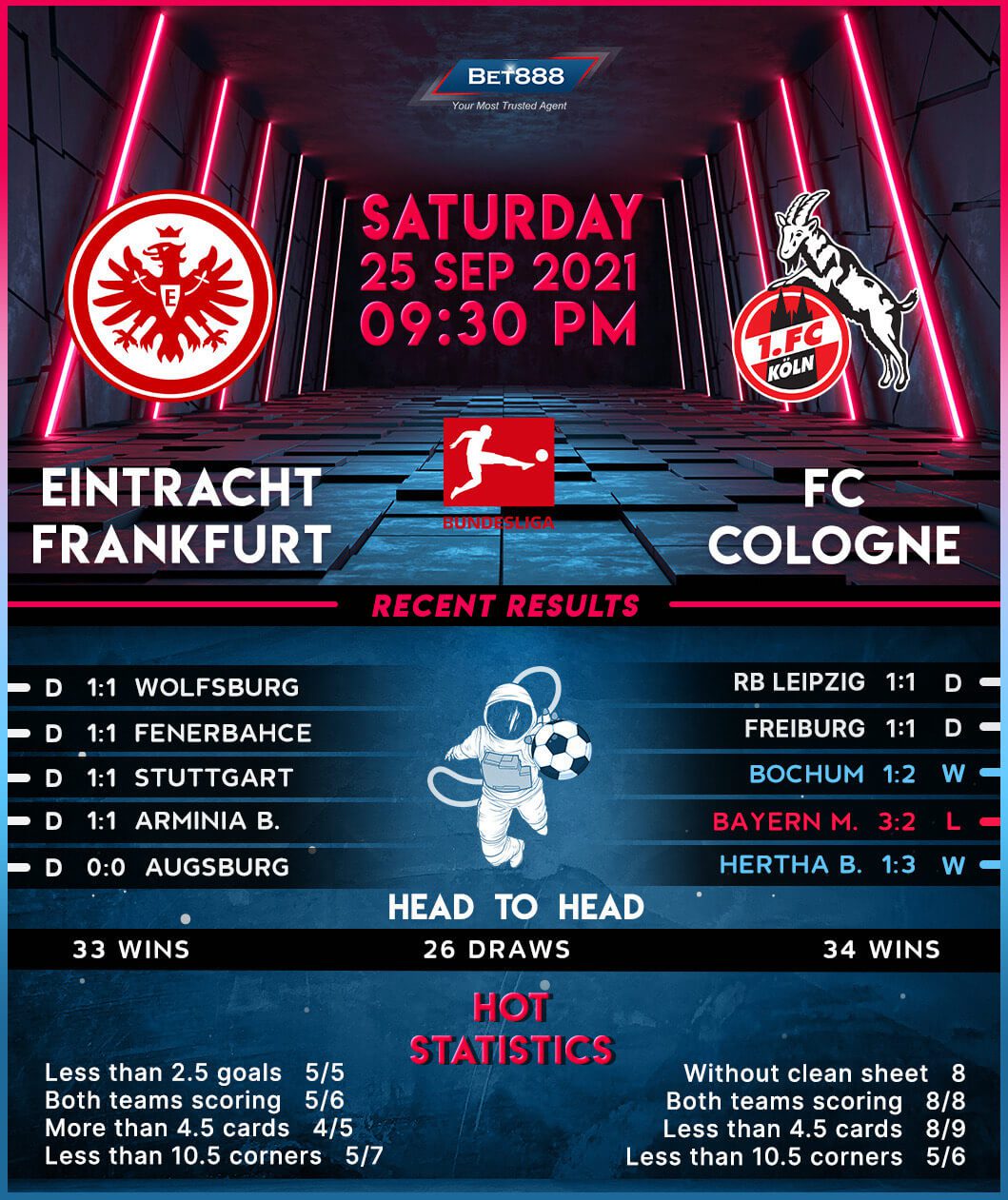 Eintracht Frankfurt will be gunning for their first Bundesliga win of the season when they meet this campaign’s surprise package Cologne at the Deutsche Bank Park.
