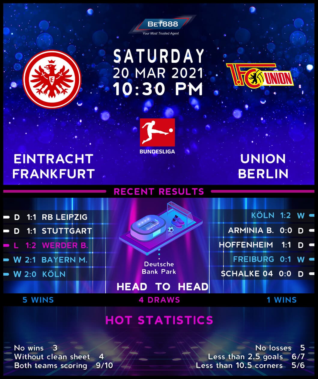 Eintracht Frankfurt and Union Berlin will square off at the Deutsche Bank Park in an exciting Bundesliga encounter.