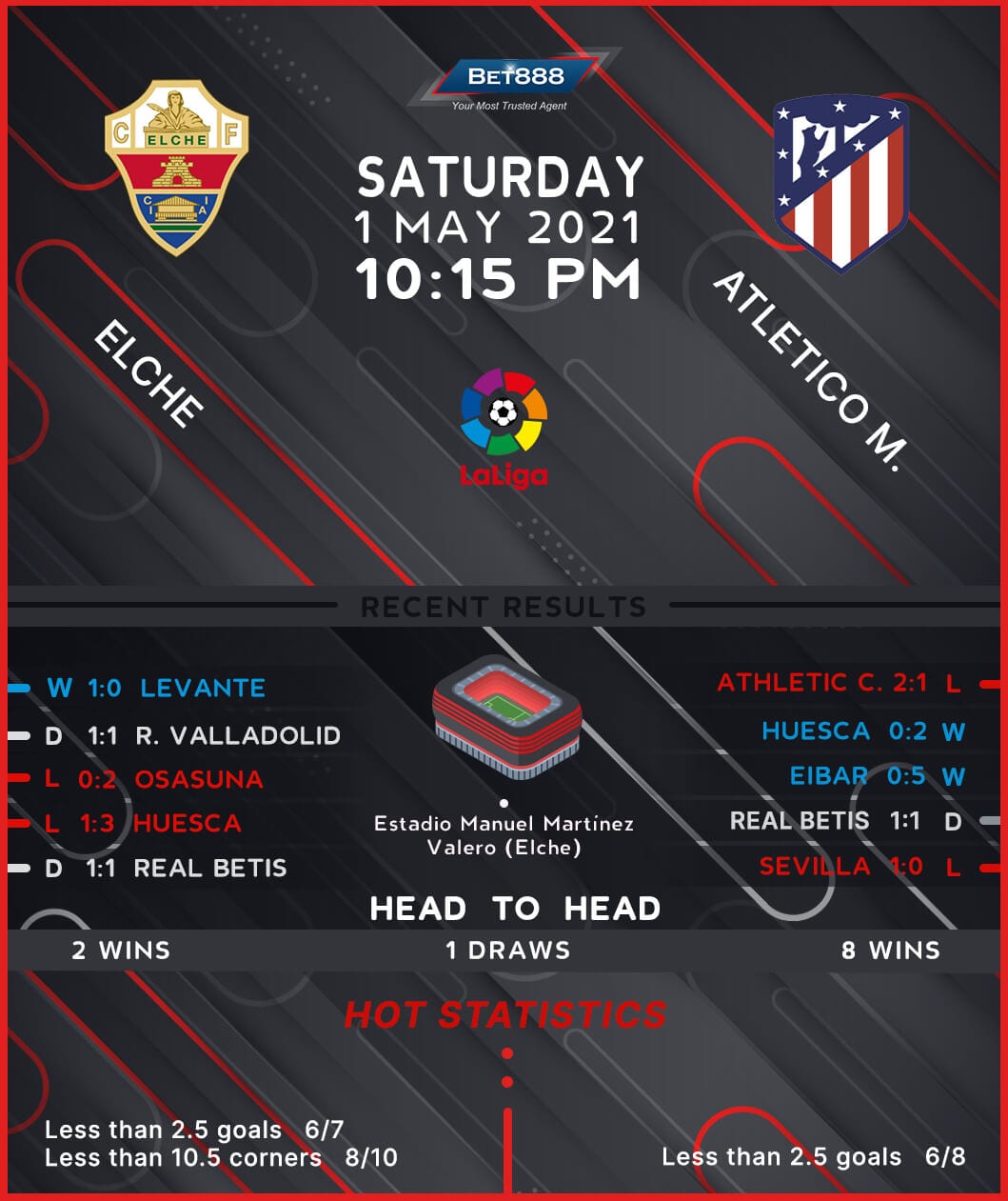 Relegation-threatened Elche and La Liga leaders Atletico Madrid will lock horns at the Estadio Manuel Martínez Valero this weekend.
