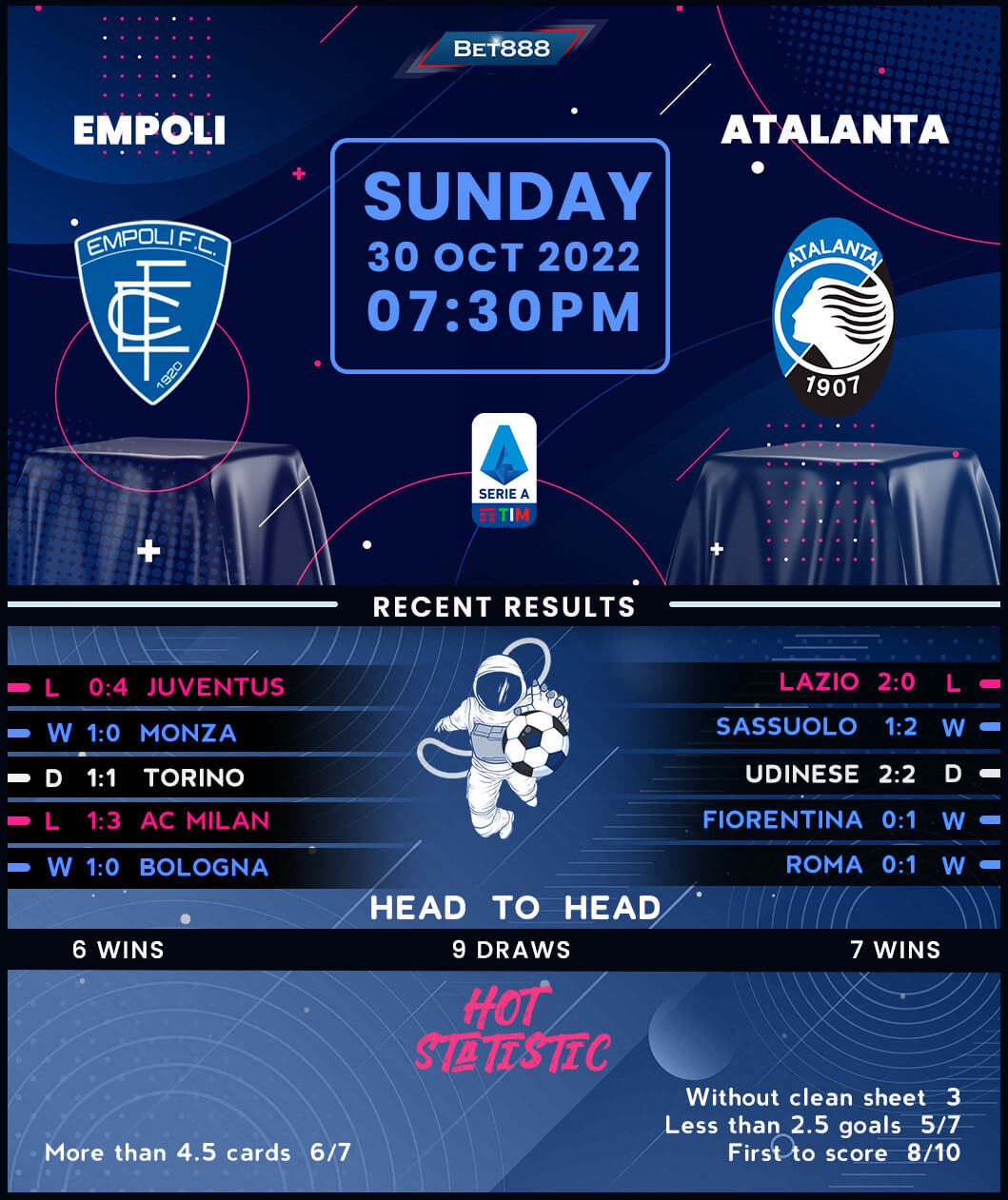 Serie A top-four hopefuls Atalanta take a trip to the Stadio Carlo Castellani to face off against mid-table strugglers Empoli.