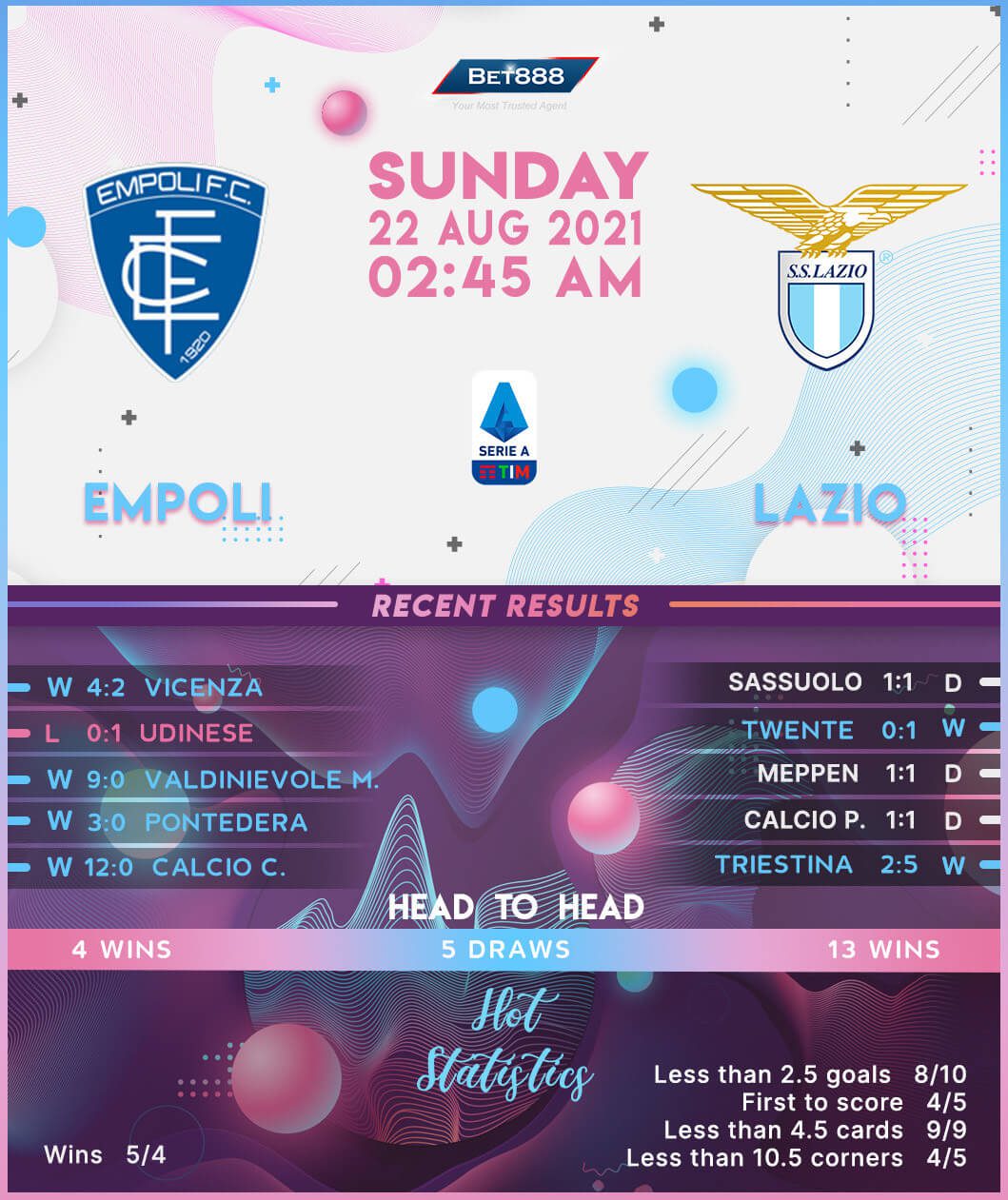 Empoli’s first Serie A fixture since their eagerly-awaited return to Italy’s top tier pits them against Lazio at the Stadio Carlo Castellani.