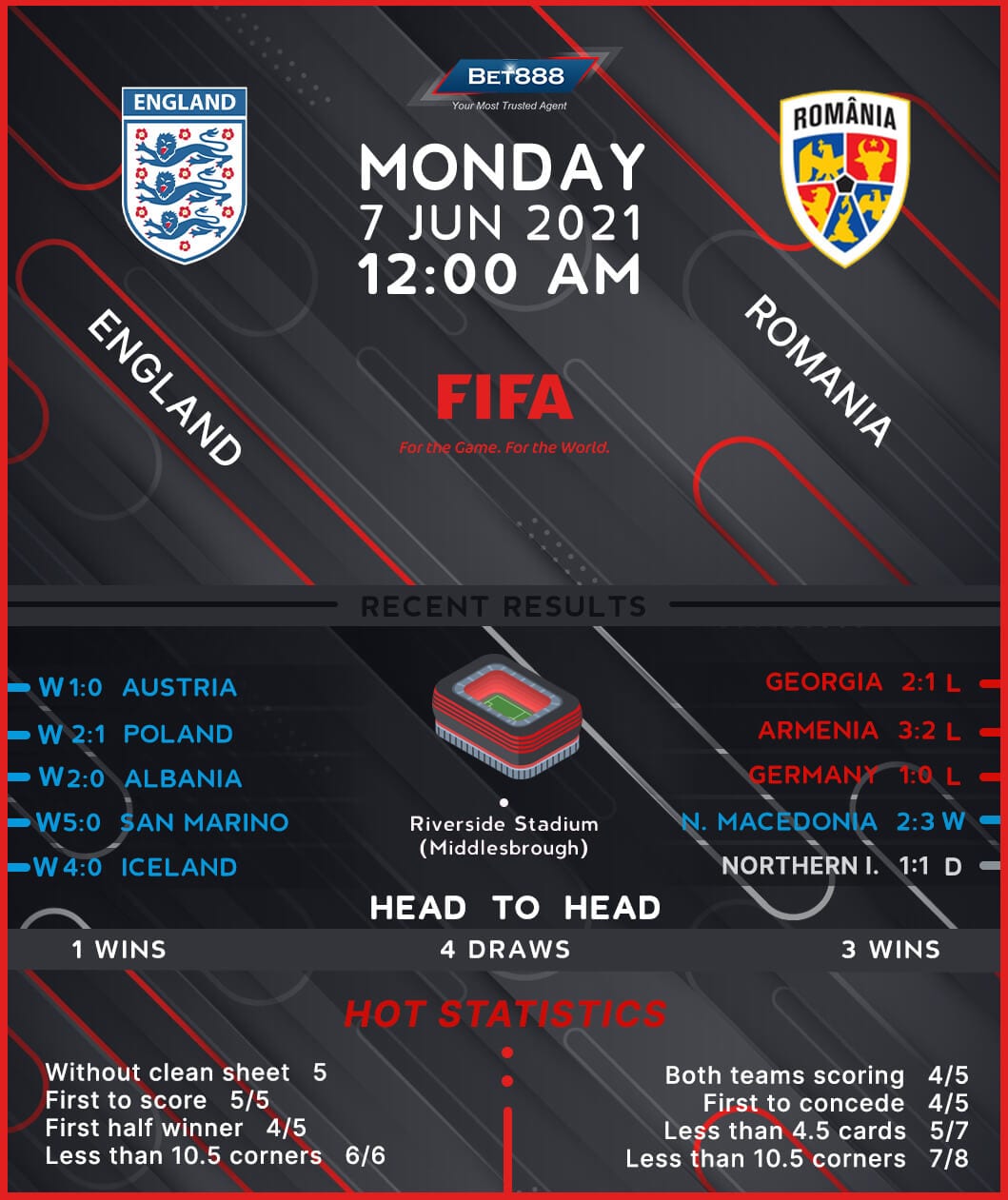 England and Romania are set to face-off at Riverside Stadium in the home side’s final preparation game ahead of the Euro finals.