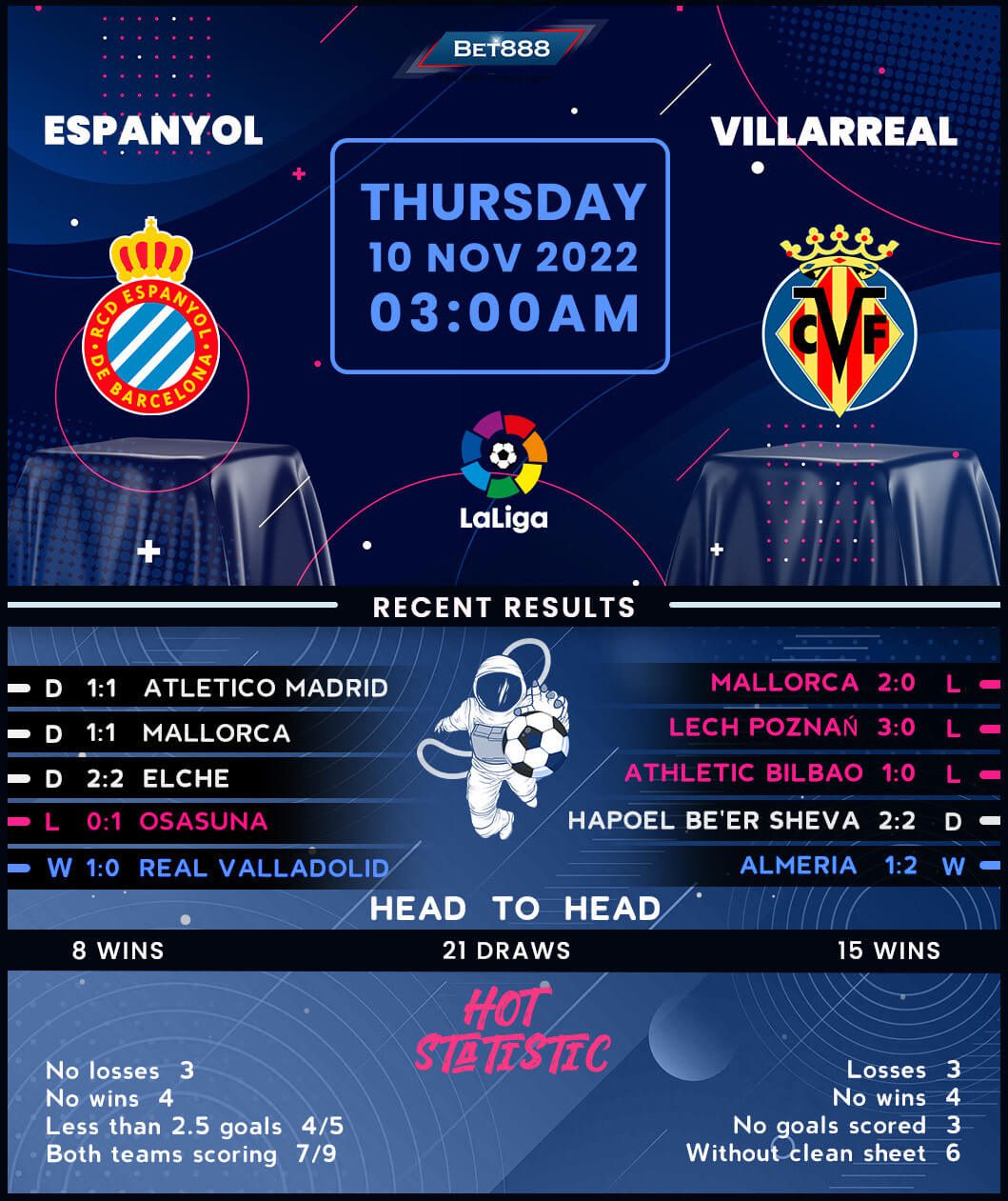 The two underperforming sides will trade tackles at the RCDE Stadium this midweek as Espanyol and Villarreal meet each other in the ultimate La Liga round ahead of the World Cup break.