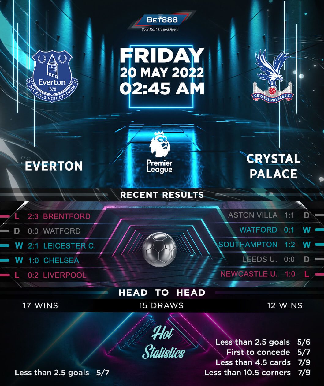 Everton’s most significant match of the 2021/22 Premier League season pits them against top-half hopefuls Crystal Palace at Goodison Park.