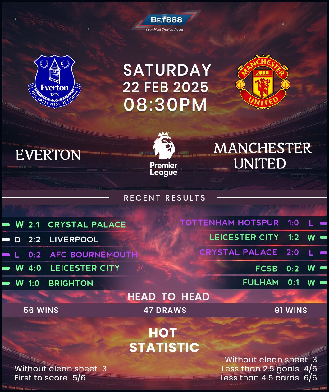 Goodison Park forms the backdrop for a bottom-half Premier League six-pointer between Everton and Manchester United.