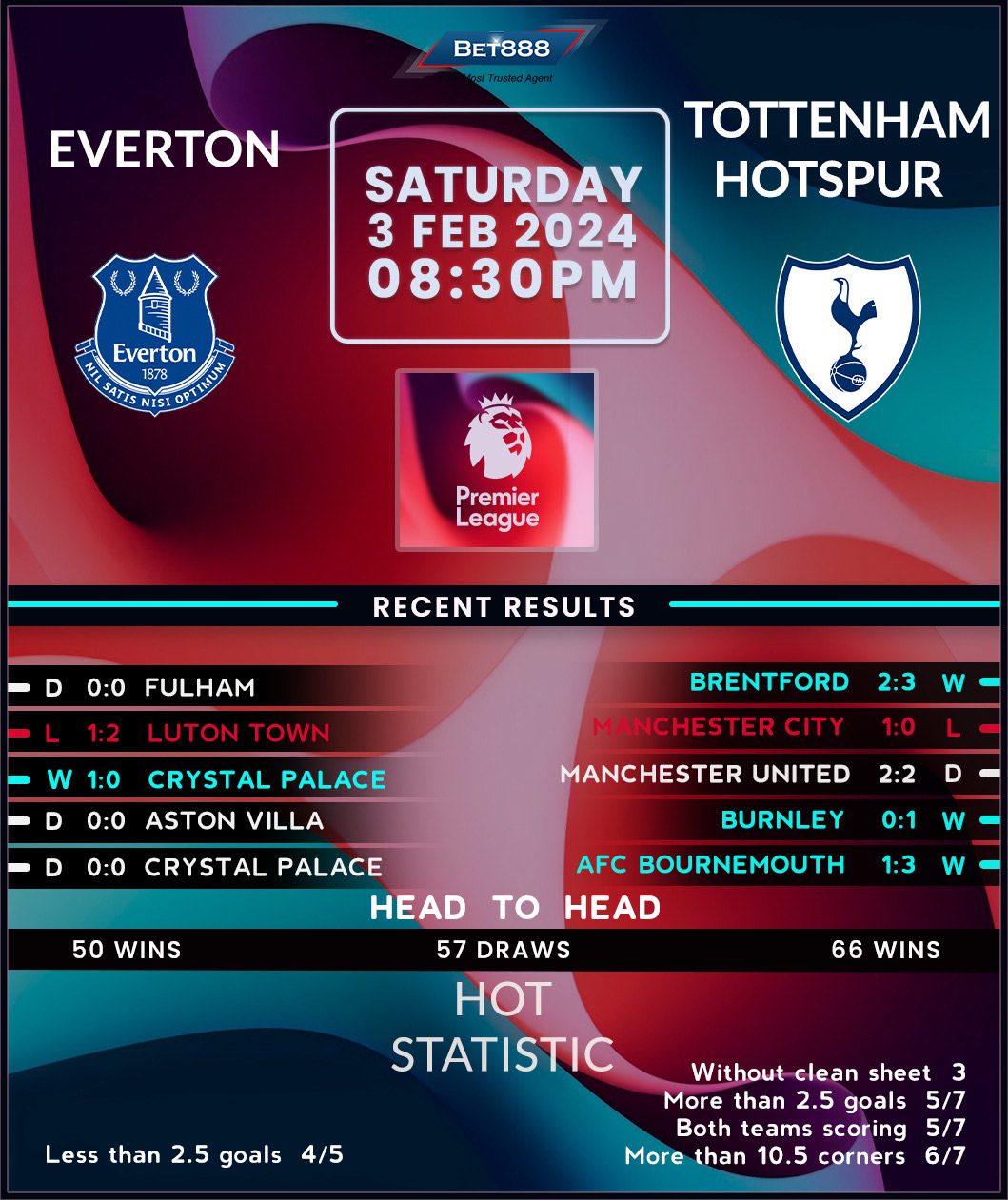 Goodison Park forms the backdrop for a lopsided Premier League showdown between relegation-fighting Everton and top-four hopefuls Tottenham Hotspur.