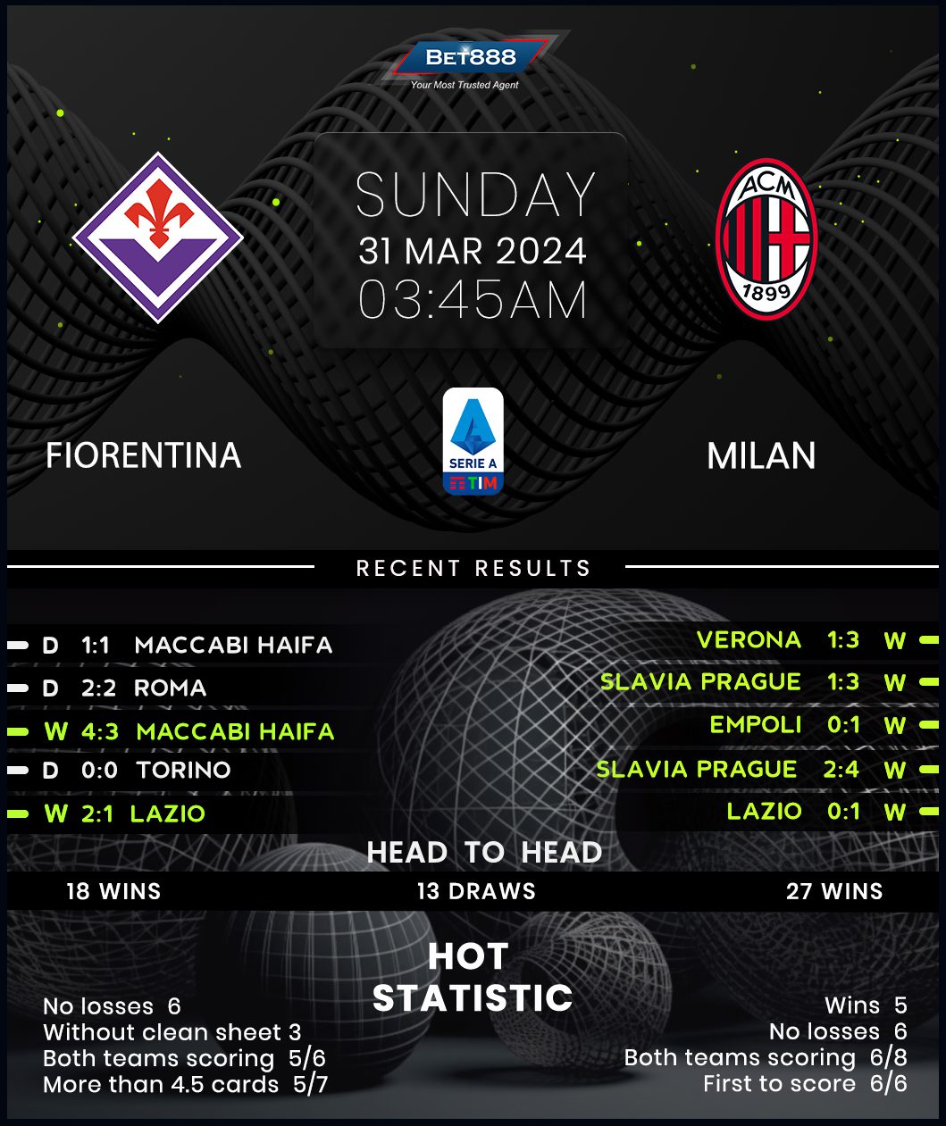 Fiorentina and AC Milan are set to square off in a handsomely-looking Serie A showdown at Stadio Artemio Franchi.