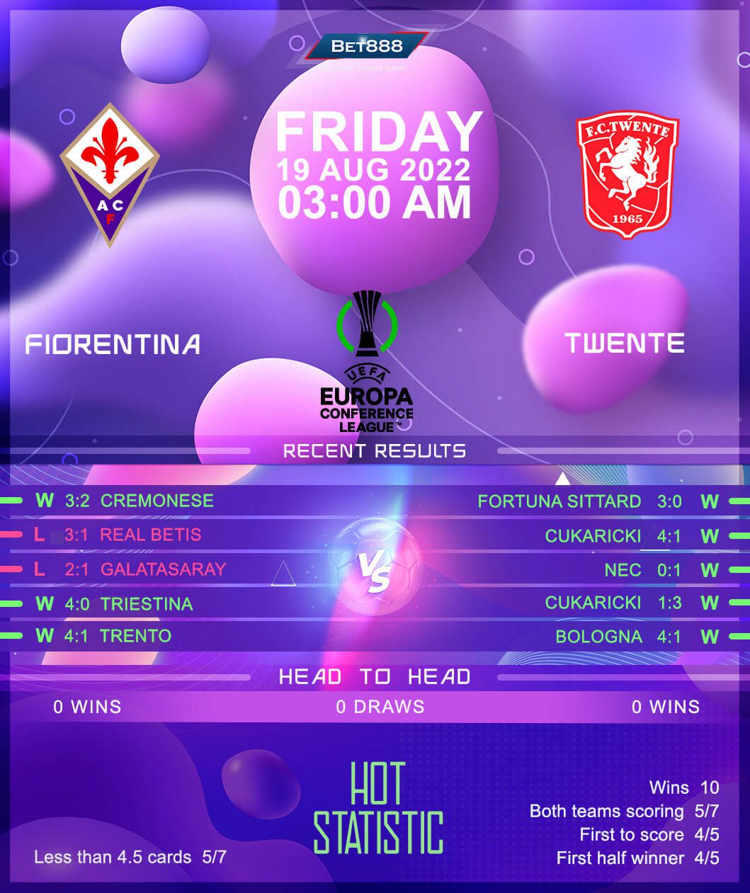 Stadio Artemio Franchi is the venue as Fiorentina and Twente lock horns in the first leg of their tasty-looking Europa Conference League playoff tie.
