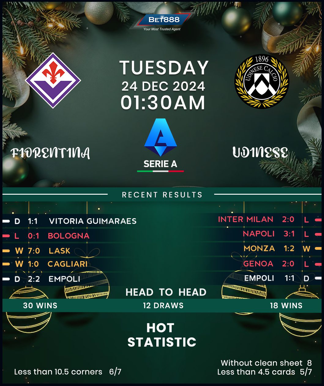 Stadio Artemio Franchi is the venue as Fiorentina and Udinese go head-to-head in an exciting Serie A meeting.