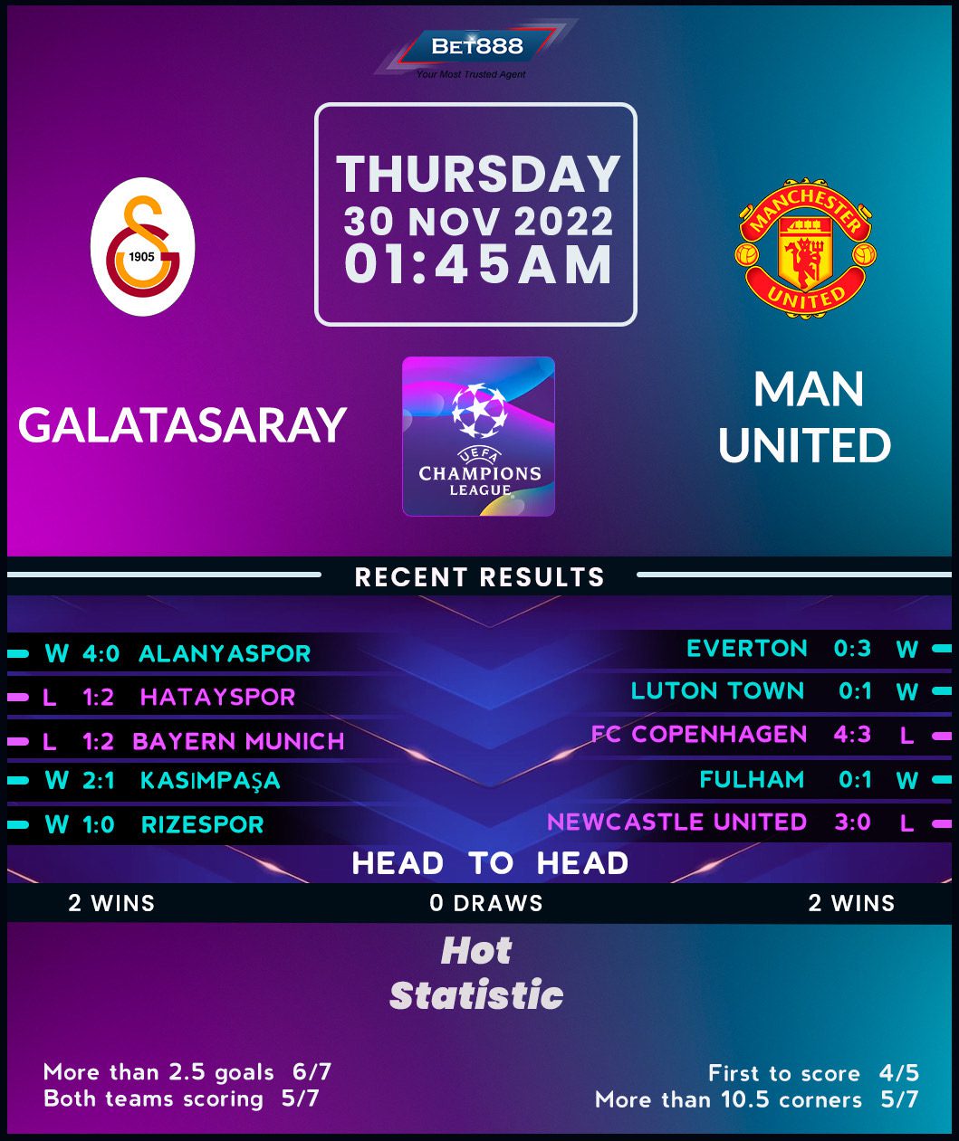 On the other hand, Manchester United put in a stellar performance to beat Everton 3-0 at the weekend, making it three Premier League wins on the trot while setting themselves up nicely for this must-win trip. Erik ten Hag’s men have unfathomably lost three of their four Champions League games this season (W1) and can consider themselves lucky for commencing this round only one point off Copenhagen. But with an ominously-looking clash against Bayern Munich awaiting them on the final matchday, the ‘Red Devils’ must take three points here by ending a dismal three-game losing run on Turkish soil. However, they’ve traveled poorly in the Champions League, claiming just one win in their last eight away matches at Europe’s top table (D2, L5), casting further doubt on their bid to avenge the abovementioned H2H upset.