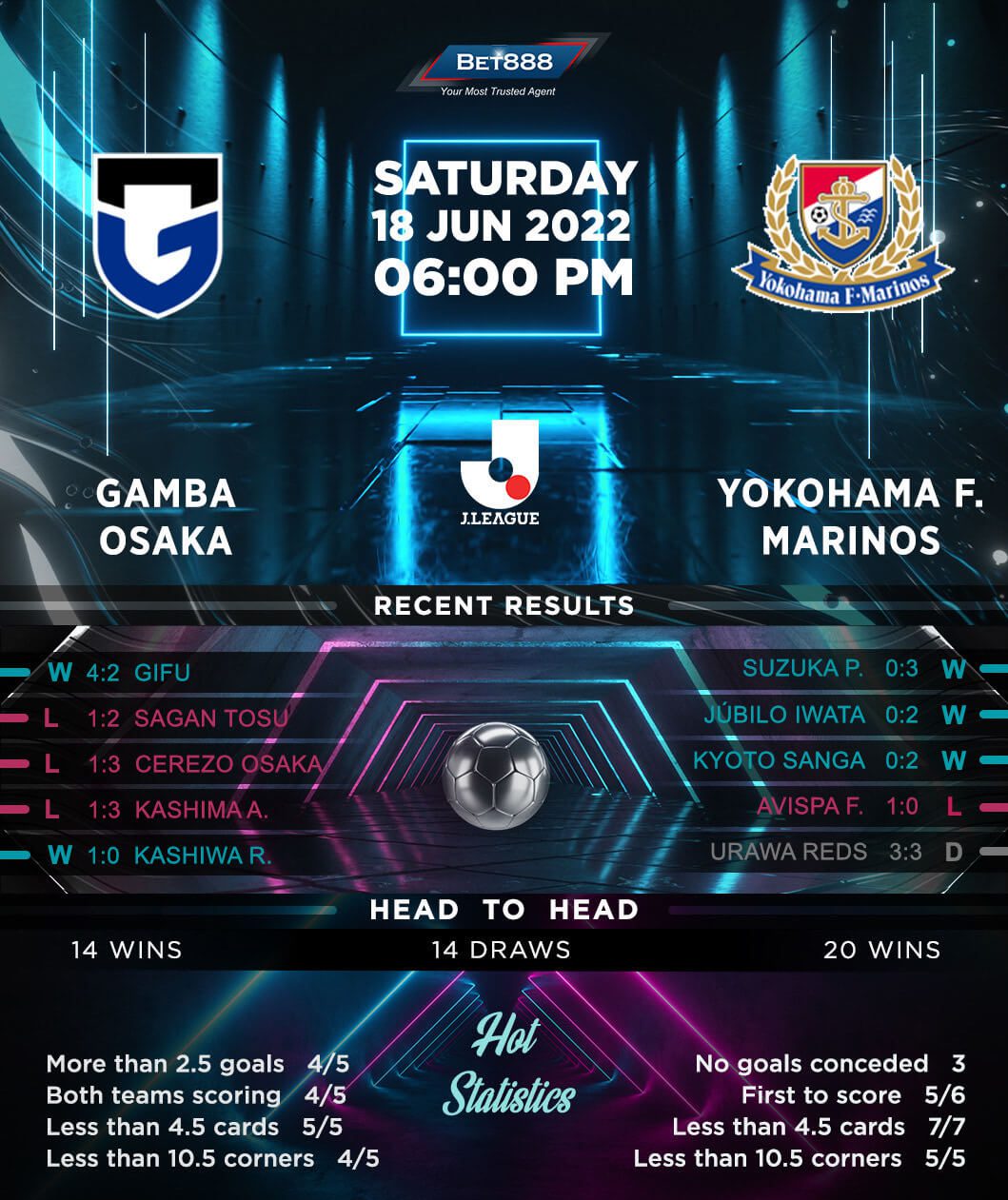 On the other hand, Yokohama Marinos have enjoyed a noticeable upturn in form going into this clash. They have gone from two successive league matches without winning (D1, L1) to back-to-back victories, both of which yielded the identical 2-0 scoreline. Adding to the visitors’ confidence, they have only lost one of their last five J1 League fixtures held on hostile turf (W3, D1). That’s mainly thanks to their free-scoring attack that impressively netted 2+ goals in four of those five games, averaging three per match. It has also been the case in two of Yokohama’s last three league visits to Gamba.
