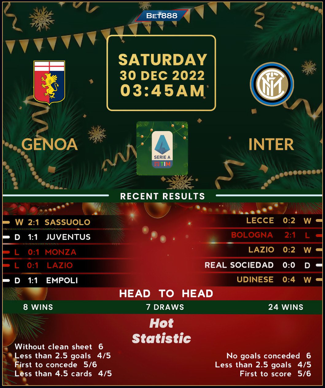 Serie A pacesetters Inter Milan head to the Stadio Luigi Ferraris to meet Genoa in their last match of 2023.
