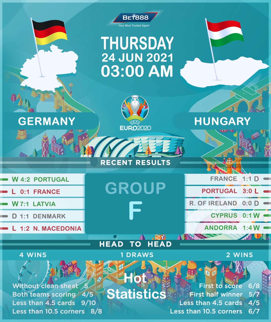 Allianz Arena is the venue as Germany and Hungary go head-to-head in their decisive Euro 2020 Group F encounter.