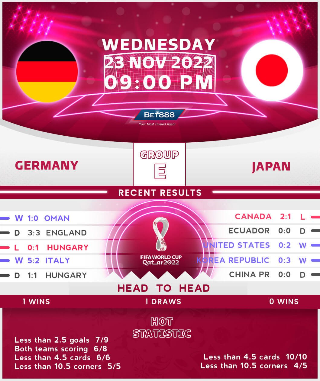 Khalifa International Stadium is the venue as Germany and Japan face off against each other in their 2022 World Cup Group E opener.