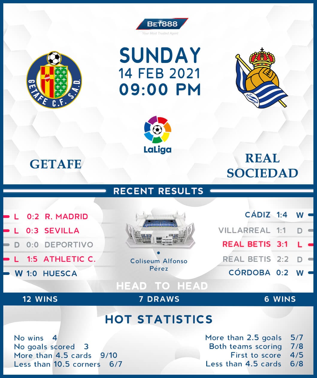 Coliseum Alfonso Perez hosts what could be a high-scoring contest between Getafe and Real Sociedad despite all the odds. Each of the last four La Liga encounters between these sides has produced over 2.5 goals.