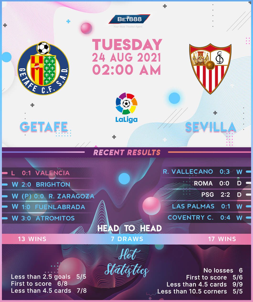 Getafe and Sevilla go head-to-head at the Coliseum Alfonso Perez in a potentially tight, low-scoring La Liga fixture. Two of the last four league meetings between these sides here have seen Sevilla eke out the identical 1-0 wins.