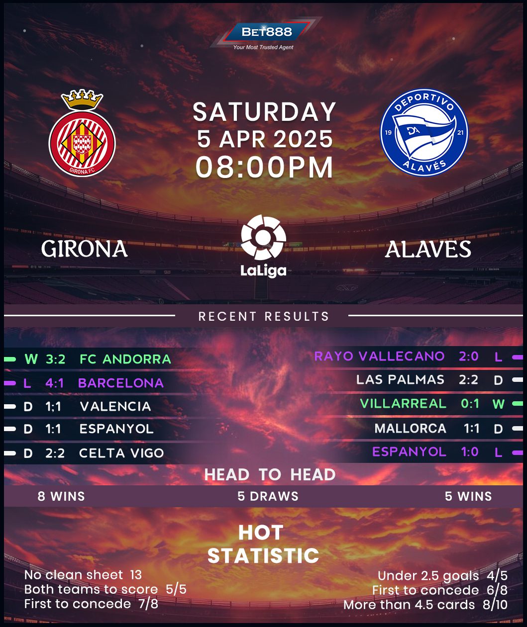 Estadio Municipal de Montilivi is the venue as two struggling La Liga sides, Girona and Deportivo Alaves, go head-to-head in a high-stakes encounter.