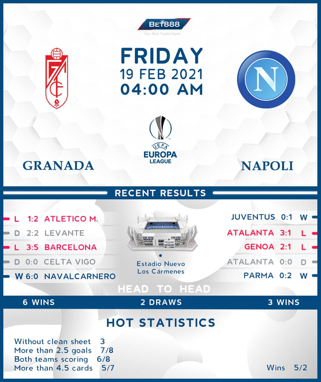 Napoli head to the Estadio Nuevo Los Cármenes to take on Granada in the first leg of their UEFA Europa League last-32 tie.