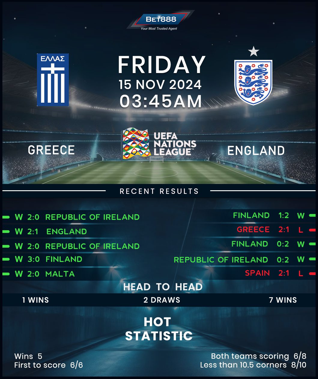 It’s a day of reckoning in the UEFA Nations League Group B2 as Greece and England face each other in a top-table six-pointer at the Olympic Stadium of Athens.