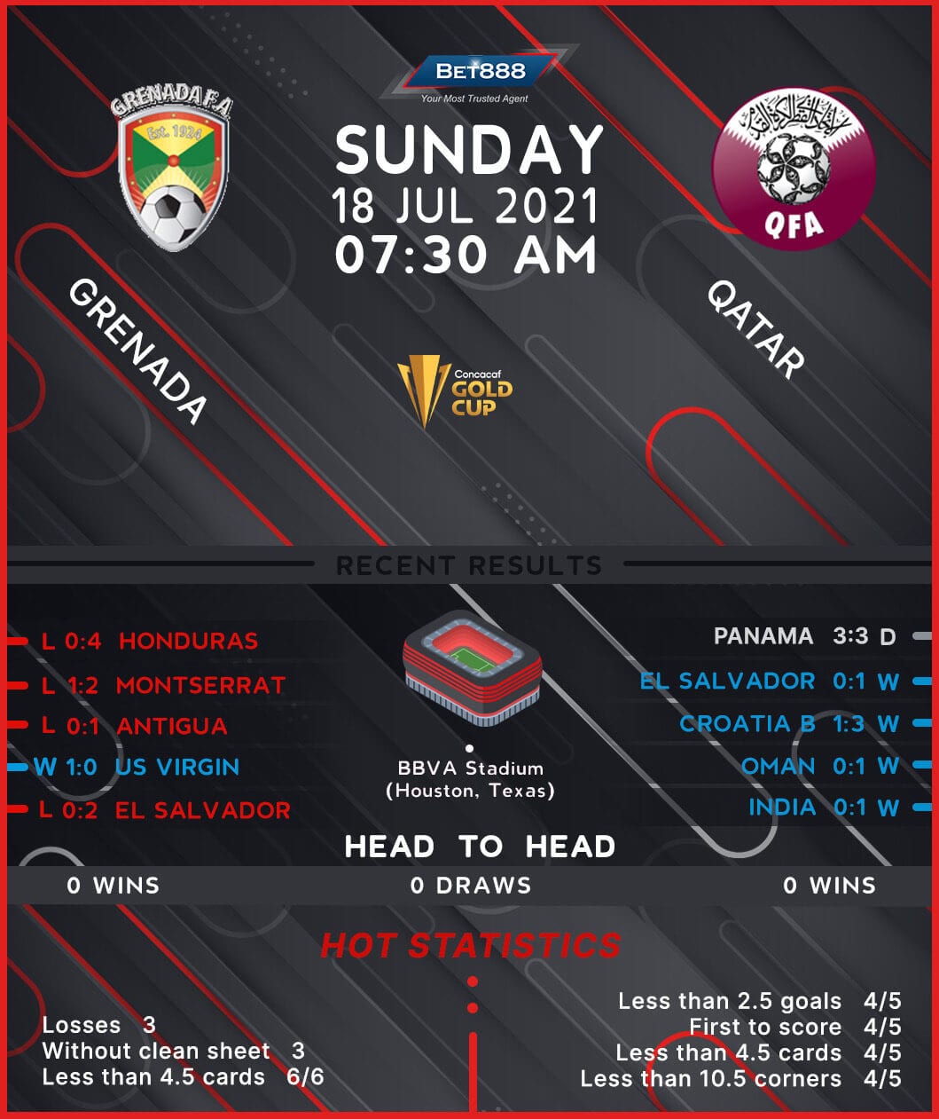 BBVA Compass Stadium is the venue as Grenada and Qatar continue their 2021 CONCACAF Gold Cup journey.