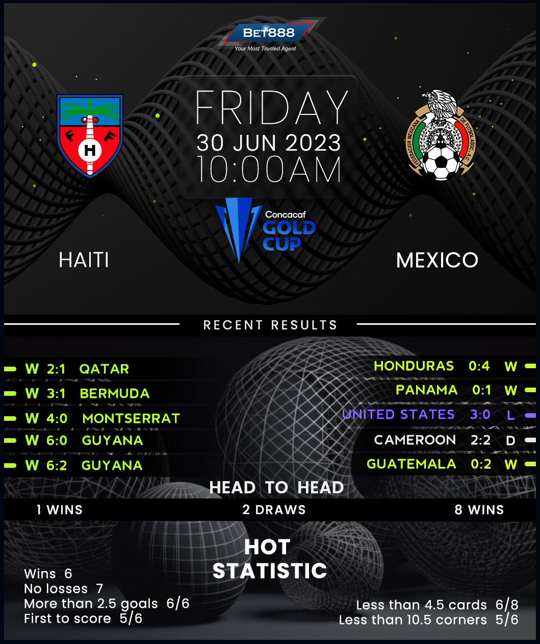 It’s been precisely 50 years since Haiti’s only previous Gold Cup triumph. But based on their enthralling 2-1 comeback win over Qatar on Saturday, the ‘Grenadiers’ fans can dare to dream big. Although their fairytale may come to an end against an almighty Mexico, the Caribbeans have laid the groundwork for another knockout qualification. They have reached the quarter-finals three times since the turn of the 21st century and the semi-finals once in 2019. While the bookmakers don’t fancy their chances in this match-up, Gabriel Calderón Pellegrino’s side won’t go down without a fight, especially after racking up a six-game winning run in the build-up to this encounter. However, it’s worth noting that they’ve failed to score in both Gold Cup meetings with Mexico in the new millennium (L2).