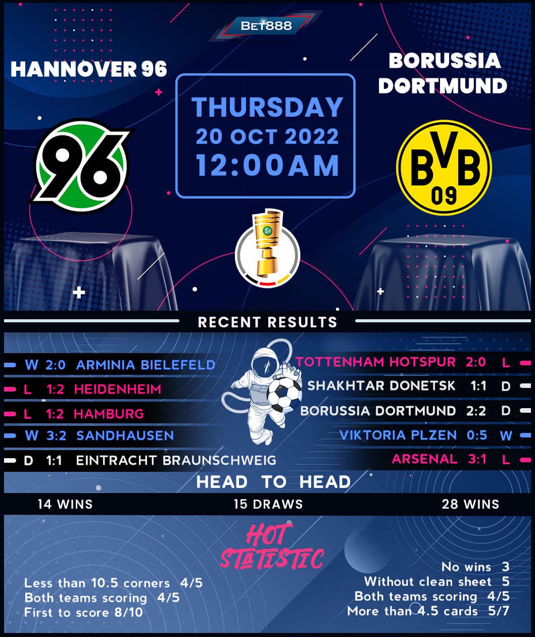 Bundesliga title hopefuls Borussia Dortmund make the journey to the Heinz-von-Heiden-Arena to take on Bundesliga 2. outfit Hannover 96 in an exciting DFB-Pokal second-round tie.
