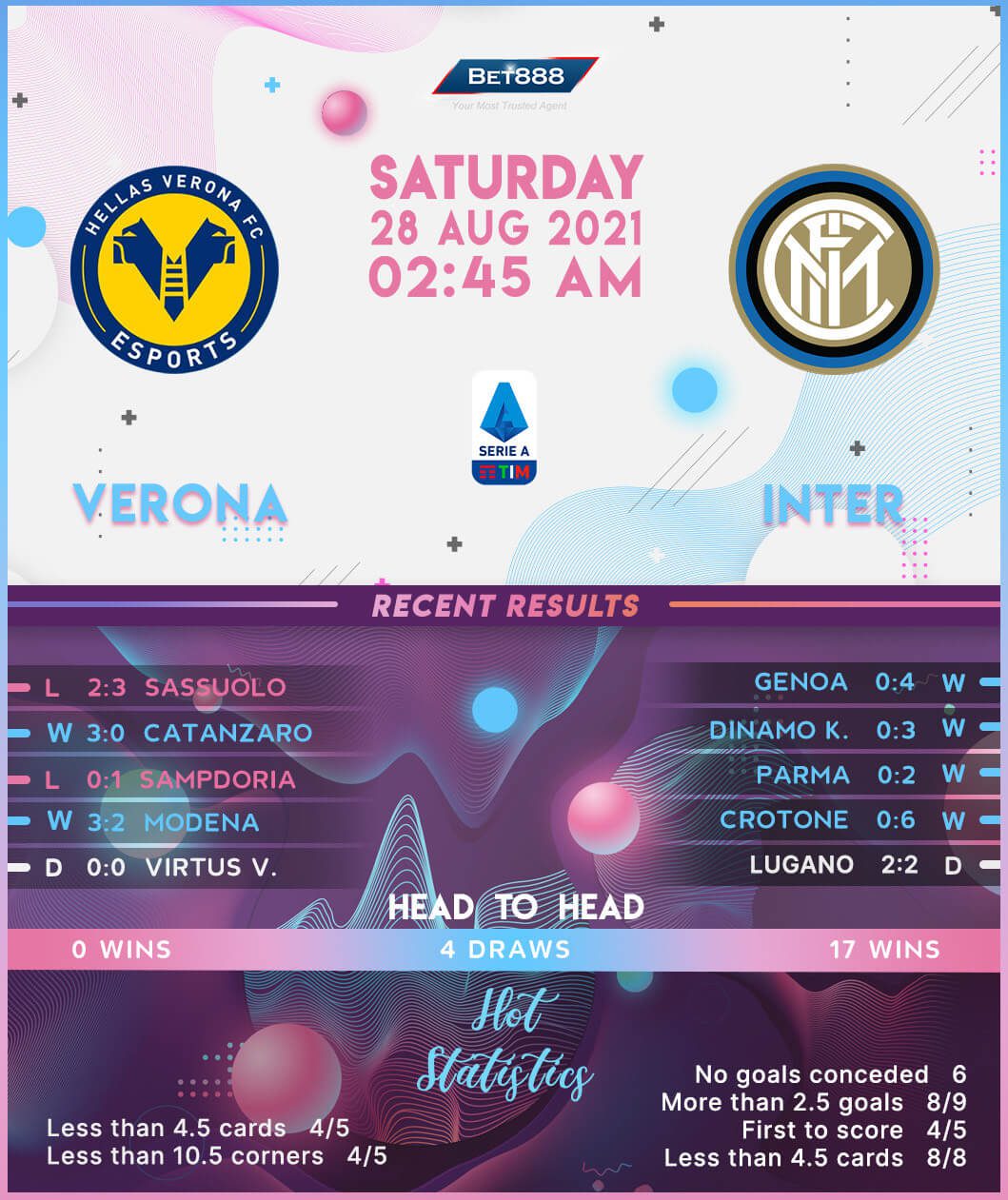 A 3-2 home defeat to Sassuolo on the opening weekend has extended Hellas’ winless Serie A streak to ten straight matches (D4, L6). After starting his new adventure with a whimper rather than a bang, new manager Eusebio Di Francesco will be looking to make history here and lead Verona to their first top-flight victory over Inter since 1992 (D4, L17)! Regardless of the outcome, ‘I Gialloblu’ will be confident of at least finding the back of the net, having scored at least once in each of their last five home Serie A outings. Worryingly, though, you have to go back to mid-October 2020 to find Verona’s last home clean sheet in Serie A, with ‘I Mastini’ conceding at least once in 17 consecutive such fixtures since a goalless home draw with Genoa.
