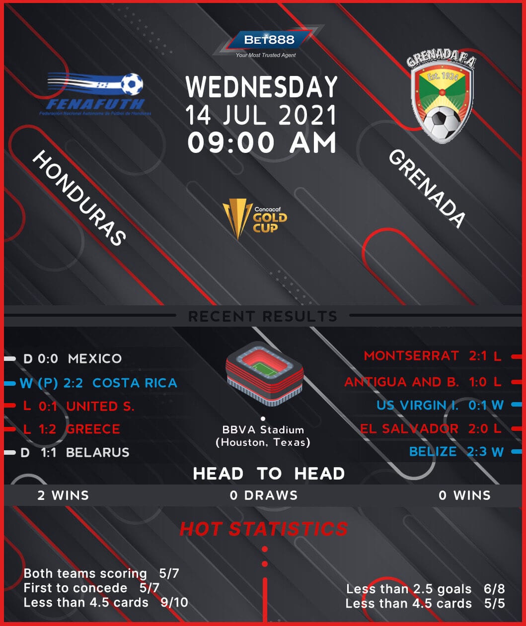 BBVA Compass Stadium is the venue as Honduras and Grenada go head-to-head in their opening 2021 CONCACAF Gold Cup fixture.