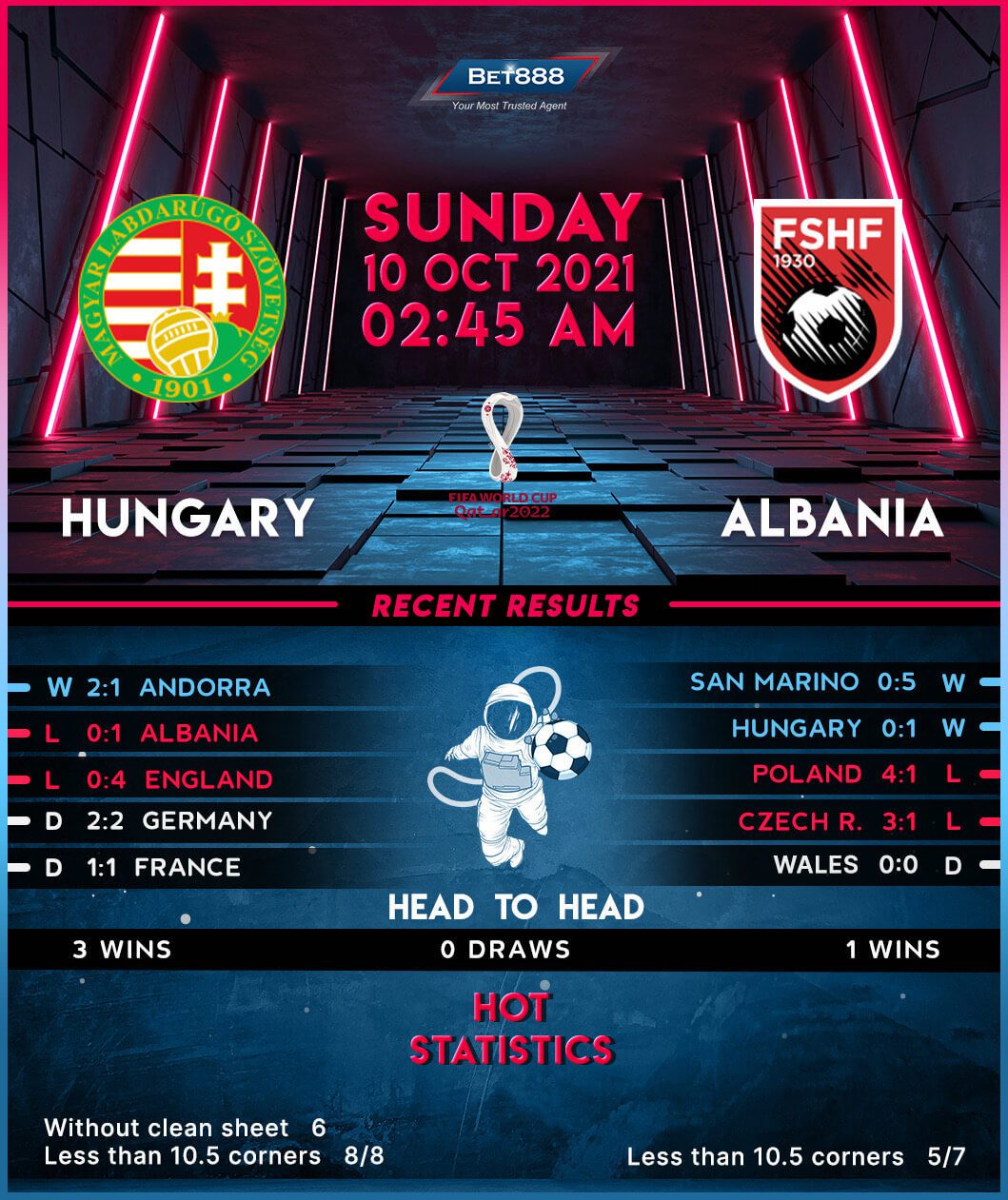 The Hungarians have failed to build on their spirited Euro 2020 performances, losing two of their three World Cup qualifiers in September ‘to nil’ (W1). Consequentially, the ‘Magyars’ trail second-placed Albania by two points. Therefore, Hungary should consider this event as a must-win fixture if they want to keep their hopes of qualifying for the World Cup finals for the first time since 1986 alive. After eking out a tight 2-1 win over Andorra in their most recent World Cup qualifier at home, the hosts entertain the prospect of winning back-to-back home internationals for the first time in two years. But it’s worth noting that they had drawn a blank in two consecutive home matches before putting two past the Iberian minnows, highlighting their goalscoring woes.