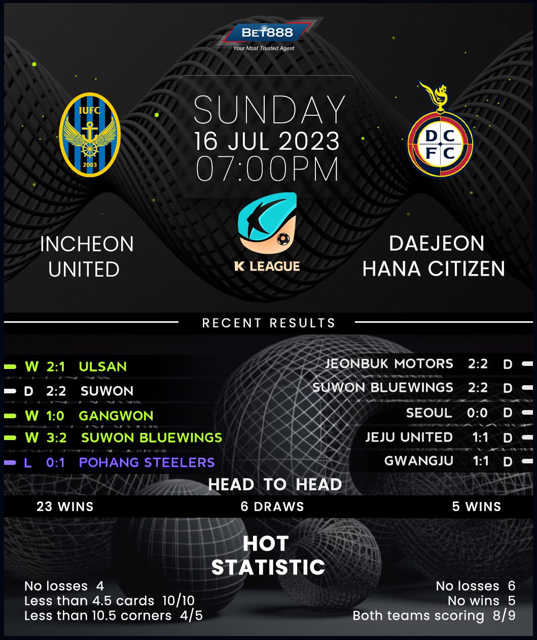 Meanwhile, visiting Daejeon fought back from a 1-0 halftime deficit to hold Jeonbuk Motors to an enthralling 2-2 home draw on Wednesday, living up to their reputation as ‘stalemate specialists.’ Indeed, Daejeon’s last five league fixtures have ended level, with only Gangwon (10) drawing more K League 1 games than Lee Min-sung’s side this term (9). Against this backdrop, just one of Daejeon’s last nine top-flight meetings with Incheon have finished without a winner, though they’ve found themselves on the receiving end on seven occasions (W1, L7). But the visitors will be confident about defying their disappointing H2H record after only losing once on their last seven league travels (W2, D4).