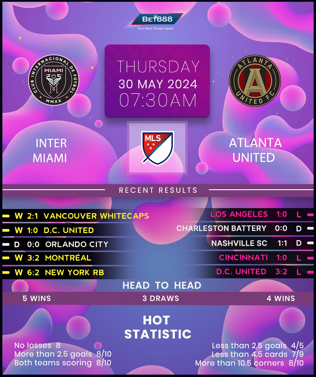 Major League Soccer high-flyers Inter Miami entertain out-of-form Atlanta United at Chase Stadium.