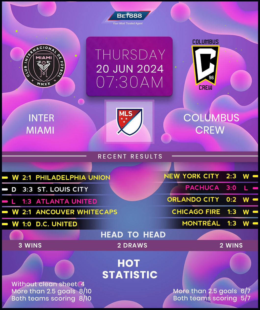 Inter Miami defied the absence of headline performer Lionel Messi to overturn a 1-0 halftime deficit in a 2-1 win at Philadelphia Union over the weekend, halting a two-game winless MLS streak (D1, L1). Back to the top of the Eastern Conference, Gerardo Martino’s team can’t afford to get complacent as despite boasting a two-point lead on 2nd-placed F FC Cincinnati, they’ve played two more games. The upcoming return to the home comforts of their Chase Stadium doesn’t necessarily mean they’ll take three points after going winless in their last two MLS home outings (D1, L1), both of which saw them concede precisely three goals. However, the Herons can take heart from their near-faultless home record against Columbus in the United States’ top division (W2, D1).