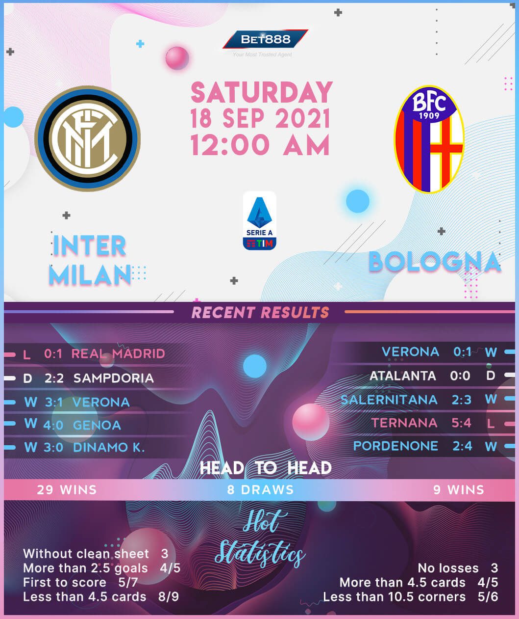 The two sides that have had identical returns from their opening three Serie A matches (W2, D1) go head-to-head at the Stadio Giuseppe Meazza as Inter Milan take on Bologna.