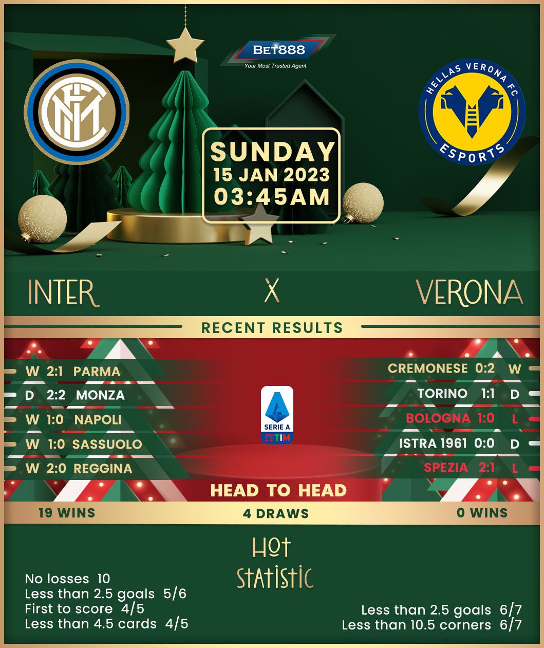 On the other hand, Hellas Verona opened the new calendar year with a morale-boosting 1-1 draw against Torino and did one better earlier this week, beating fellow relegation rivals Cremonese 2-0 at home. Verona’s mini-revival in 2023 comes on the back of a humiliating ten-game losing Serie A streak, but there’s no time for celebrations. Marco Zaffaroni’s men sit six points below safety and head into this matchday as one of only two Serie A sides yet to win a league match away from home this season (D3, L5). A shutout against Cremonese marked Verona’s first top-flight clean sheet since April 2022, but they’ve not gone back-to-back league fixtures without conceding since September 2020!