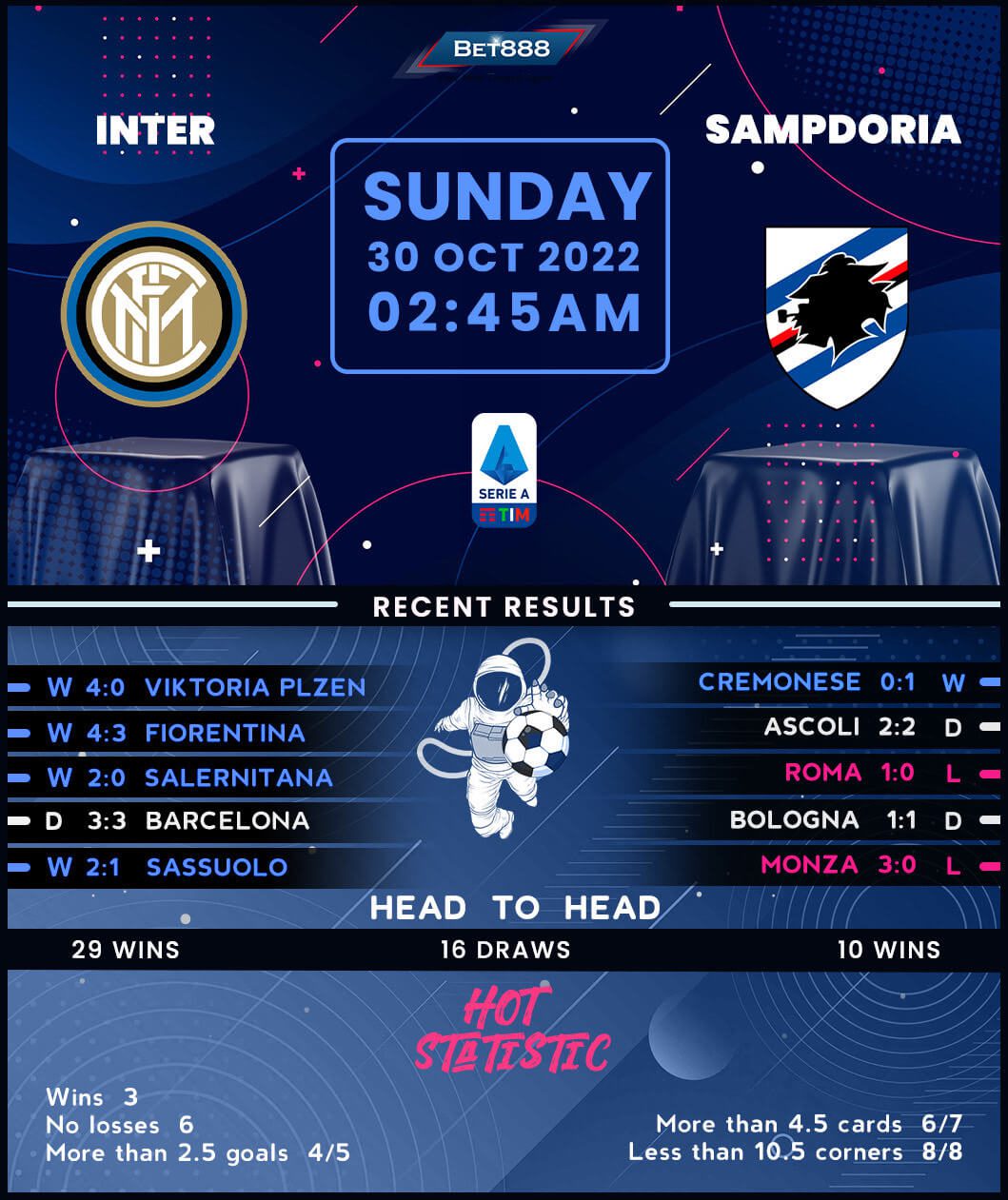Fresh from a 4-0 home thumping of Viktoria Plzen in midweek Champions League action, which sealed their progression into the knockouts at the expense of Barcelona, Inter Milan will be looking to maintain their upturn in form. Simone Inzaghi’s side eked out a dramatic 4-3 victory away to Fiorentina last weekend to take their winning Serie A streak to three straight matches and reduce the gap on fourth-placed Atalanta to three points. Interestingly, none of Inter’s last 21 top-flight outings have ended as a draw, accounting for the club’s longest such run since the 1940s. Ending that streak would be a massive upset for ‘I Nerazzurri,’ who have been victorious in eight of their last ten Serie A clashes against Sampdoria (D1, L1), including a 3-0 demolition in this corresponding fixture in 2021/22.