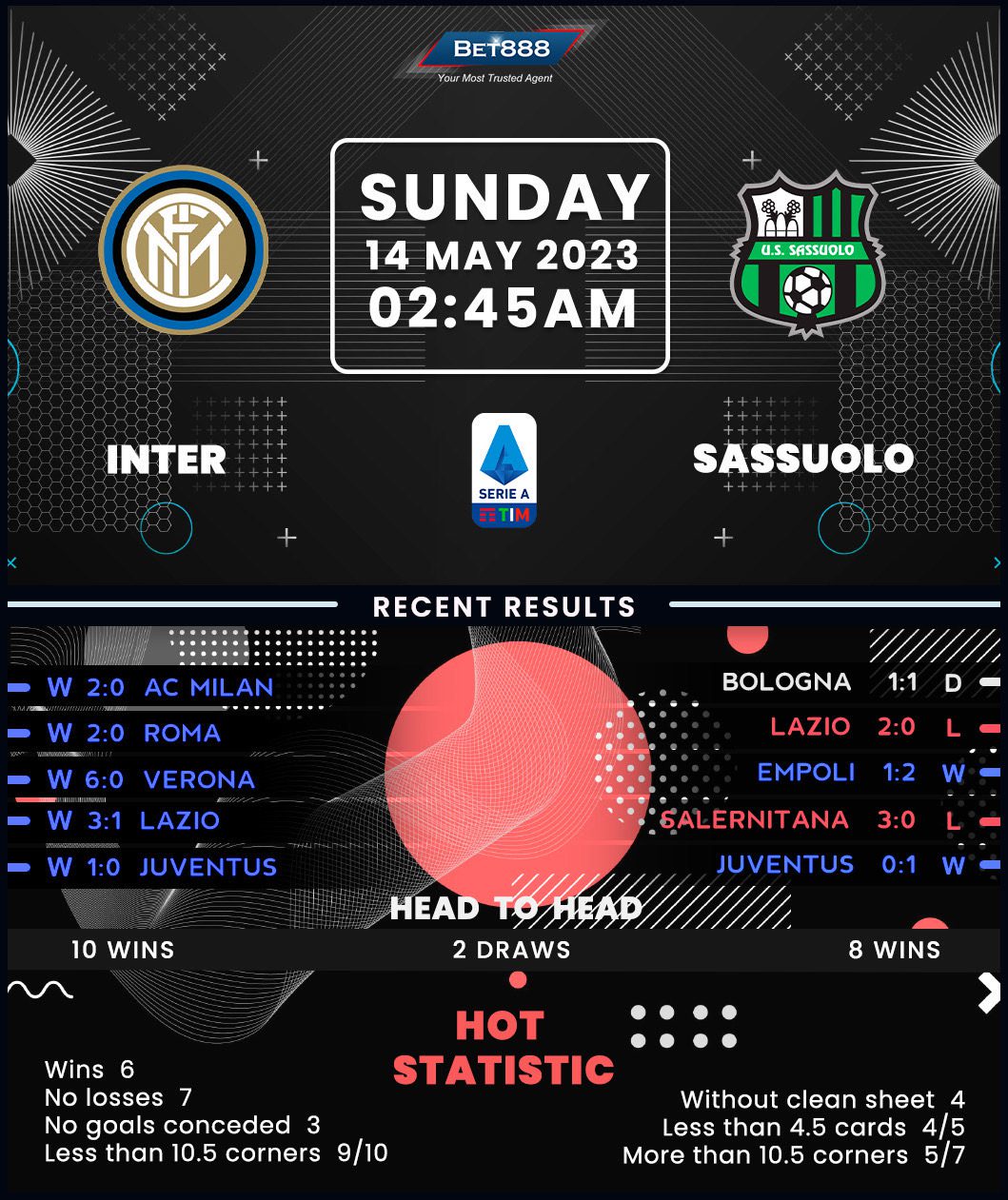 Inter Milan’s pursuit of a sixth successive top-four finish in Serie A continues at the Stadio Giuseppe Meazza against perennial mid-table tenants Sassuolo.