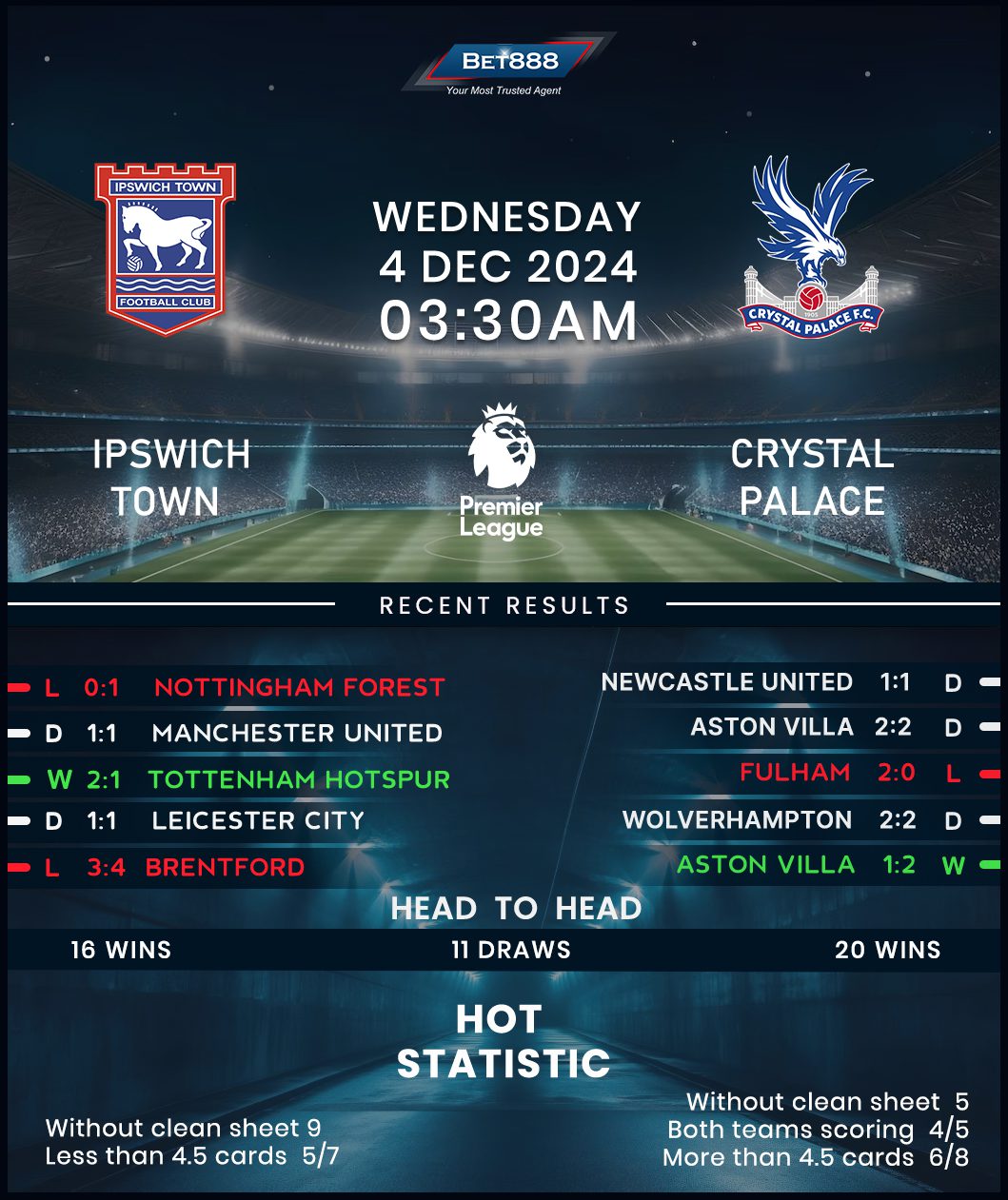 Portman Road is the venue as Ipswich Town and Crystal Palace go head-to-head in a midweek Premier League relegation six-pointer.
