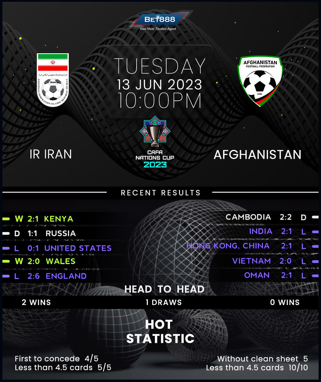 In the meantime, Afghanistan’s first-ever trip to Iran comes in the midst of a rough patch as they’ve suffered five defeats in their last six internationals (D1) after posting back-to-back wins between November 2021 and March 2022. Head coach Abdullah Al Mutairi’s number-one assignment is to stop his side’s defensive leaks after overseeing six straight matches without a clean sheet, four of which saw Afghanistan concede multiple goals. Achieving that task on foreign soil could be particularly tricky, considering the visitors haven’t managed a shutout across their last 11 international travels since a scoreless draw against Vietnam in 2017. What’s even more concerning for Al Mutairi is that his men conceded 2+ goals in 55% of those fixtures (6/11).