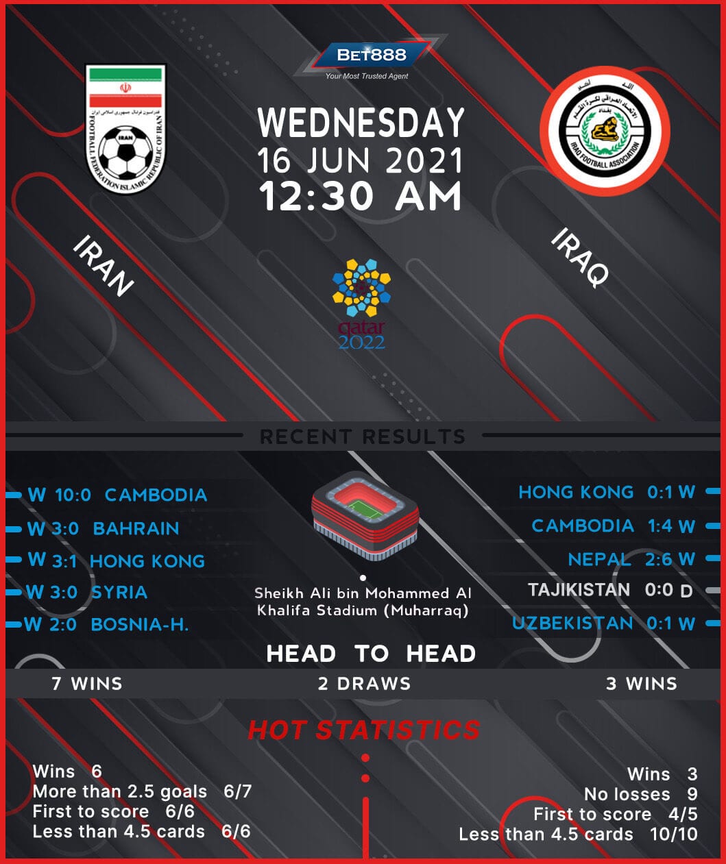 Iran and Iraq are set to trade tackles at the Al Muharraq Stadium in one of the most exciting match-ups in the 2022 World Cup qualifying Group C.