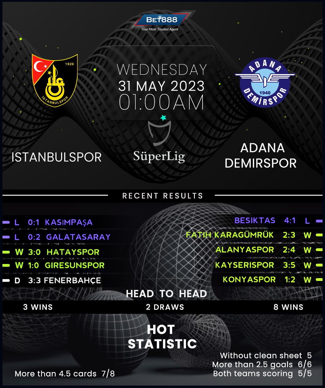 Necmi Kadıoğlu Stadyumu is the venue as relegation-threatened Istanbulspor and 4th-placed Adana Demirspor go head-to-head on the penultimate matchday of the 2022/23 Turkish Super Lig season.