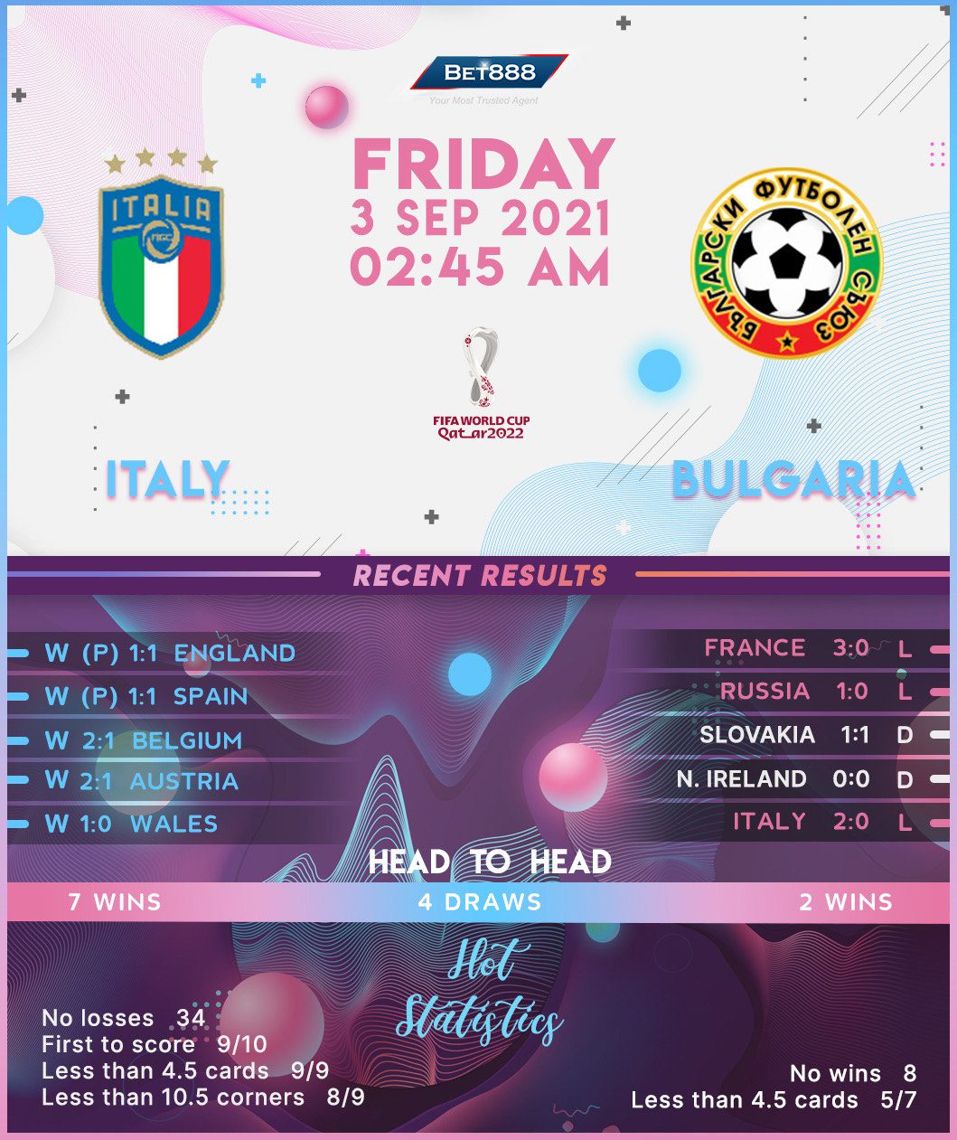 Reigning European champions Italy play host to underperforming Bulgaria at Stadio Artemio Franchi in what should be a routine 2022 World Cup qualifying fixture for the home team.