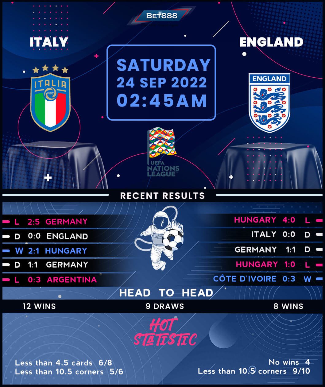 After failing to qualify for back-to-back World Cup finals for the first time in the nation’s history, losing their League A status would land a knockout blow on Italy. ‘Gli Azzurri’ fell to a morale-damaging 5-2 defeat at the hands of Germany in their most recent Group A2 outing, ending a run of three unbeaten Nations League fixtures (W1, D2). But Roberto Mancini’s men still hold a three-point lead over bottom-placed England and could mathematically assure another League A season with a win here. Adding to Italy’s confidence, they’ve not lost any of their last five international H2Hs on home soil (W3, D2). That derails their chances of losing consecutive matches for the first time during Mancini’s tenure, though an underwhelming record of two wins from nine games (D4, L3) may dampen the optimism.