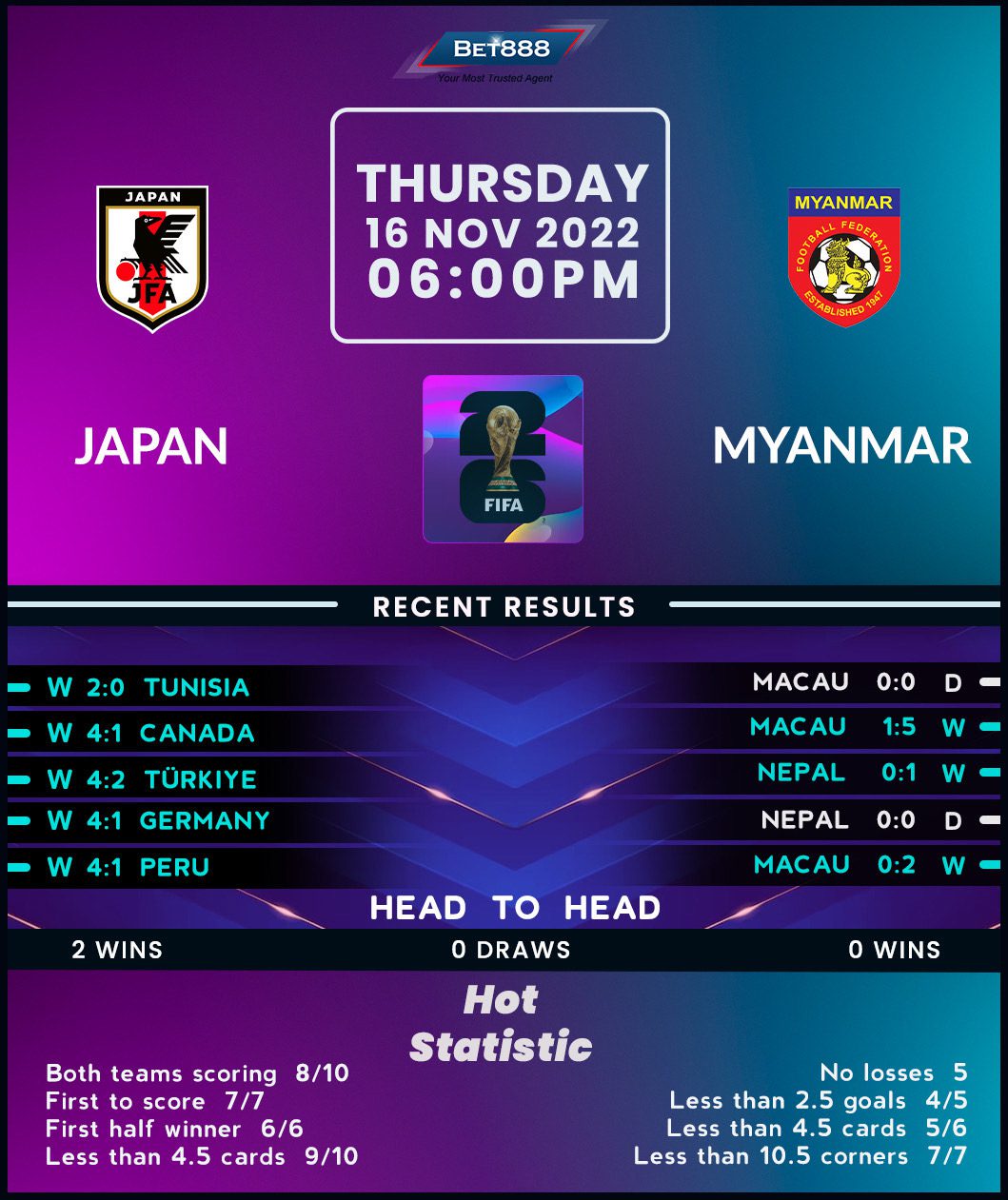 Japan’s bid to advance to their eighth successive World Cup following a heartbreaking last-16 exit at the hands of Croatia at ‘Qatar 2022’ commences against a Myanmar side they thrashed 10-0 in May 2021 en route to booking a place at the previous tournament. Anything other than another thumping victory would be a massive surprise, especially looking at Japan’s formidable form in the lead-up to this encounter (W5). Peru, Germany, Turkey, Canada, and Tunisia were on the receiving end of the Japanese’s outrageous form, with Hajime Moriyasu’s side winning each contest via multi-goal margins. Moreover, the ‘Samurai Blue’ had capped off their last World Cup qualifying campaign on a high, mustering three straight home victories by a combined score of 6-1 before sharing the spoils with Vietnam in a 1-1 draw.