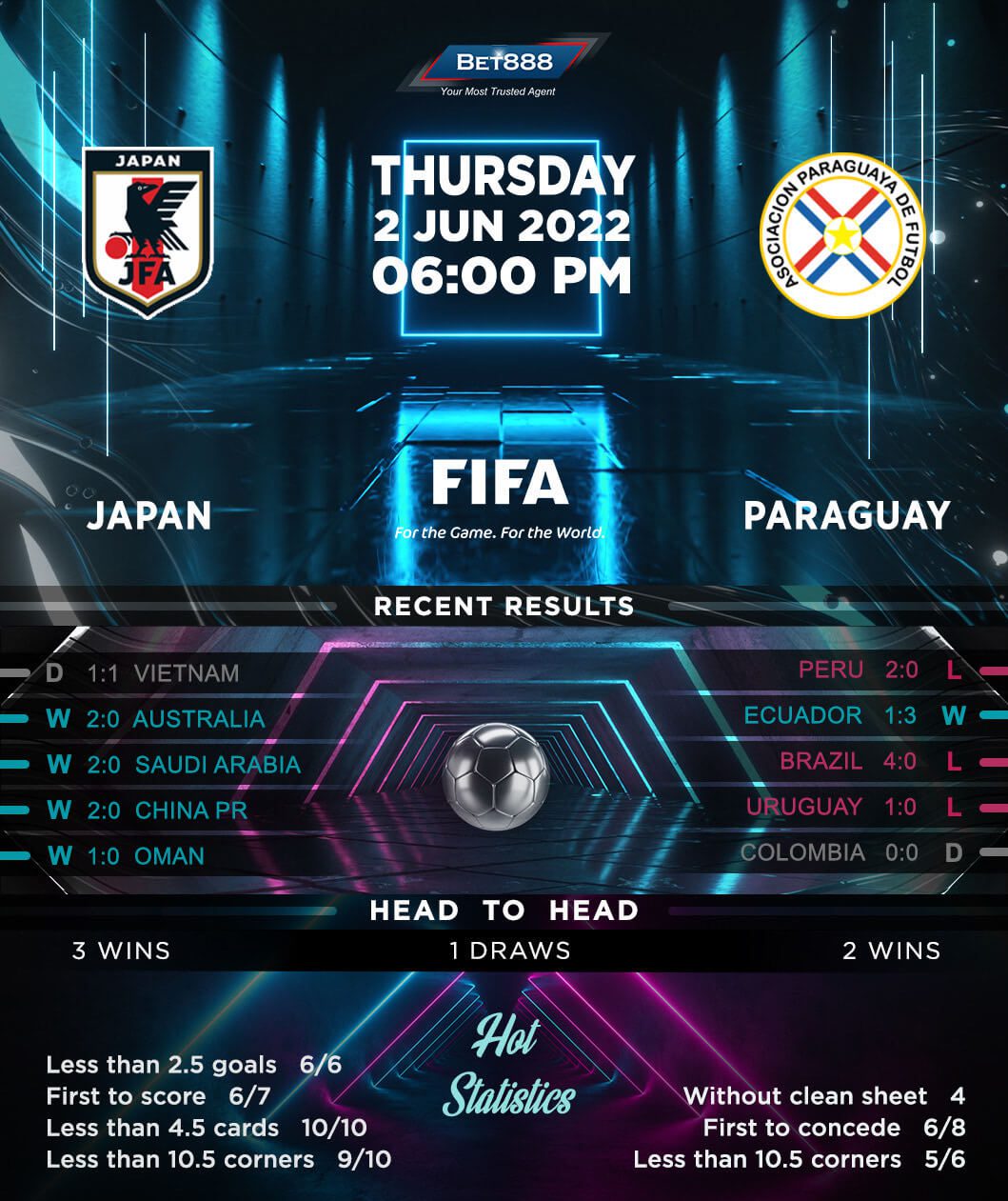 In the meantime, unlike Japan, Paraguay failed to qualify for Qatar 2022, having finished eighth in the South American qualifying group. ‘Los Guaraníes’ have nothing but pride to play for after missing out on a third successive World Cup finals. However, head coach Guillermo Barros Schelotto will be keen to build some confidence in the camp following an underwhelming World Cup qualifying campaign. A lack of scoring prowess has been Paraguay’s Achilles heel in the past year, as they’ve failed to get on the scoresheet in eight of their last nine internationals, barring a 3-1 home triumph over Ecuador in March. Going back to September 2021, they have drawn a blank in all six away matches (D1, L5), conceding 2+ goals in each defeat!