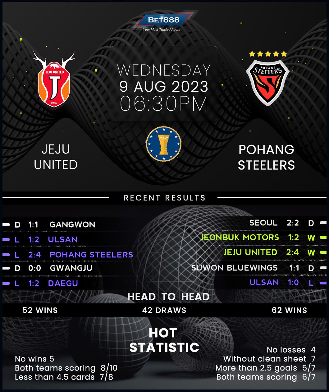 On the other hand, Pohang Steelers have won both League Cup fixtures this season without conceding, including a hard-earned 1-0 victory over Incheon United in the quarter-finals. It’s been 14 years since the ‘Steelers’ last won the League Cup, yet a four-game unbeaten run (W2, D2) in the build-up to this match-up suggests they could at least appear in the title decider. However, the visitors should be cautiously optimistic about their prospects here, especially after only managing one win on their last five competitive travels (D3, L1). Moreover, they’ve lost back-to-back visits to Jeju via a combined score of 7-1!