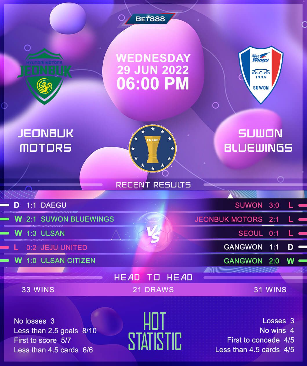 Jeonbuk Motors and Suwon Bluewings are set to trade tackles at the Jeonju World Cup Stadium in an exciting Korean Cup quarter-final tie.