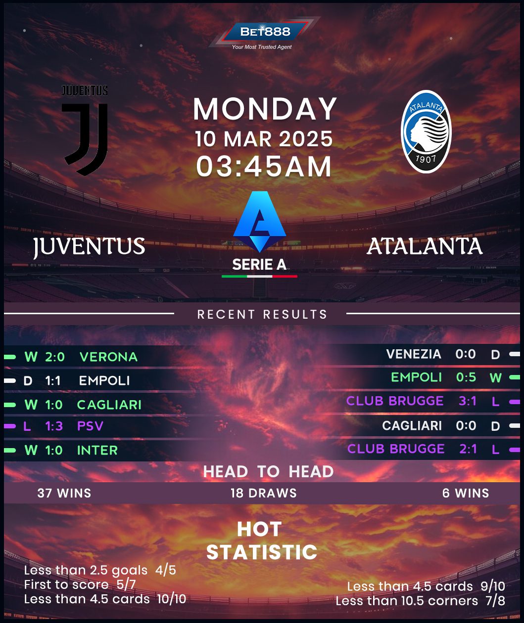 Allianz Stadium sets the stage for a heavyweight Serie A showdown between title hopefuls Juventus and Atalanta.