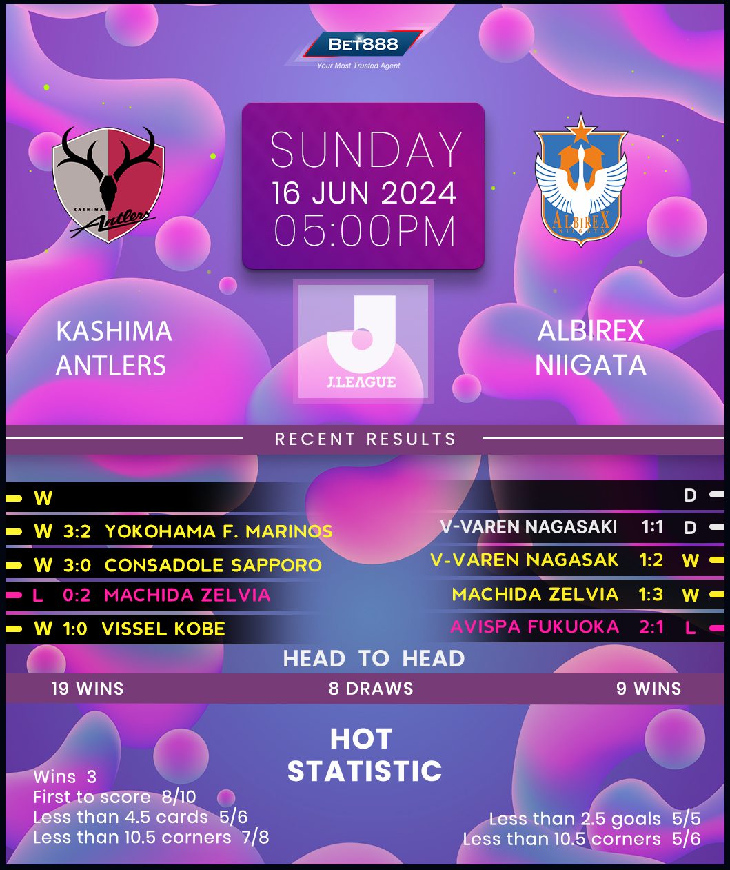 Kashima Soccer Stadium is the venue as Kashima Antlers and Albirex Niigata go head-to-head in an exciting J1 League match-up.